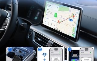 Kabelloses CarPlay und Android Auto nachrüsten: Die Adapter-AI-Box von Creasono erweitert vorhandenes kabelgebundenes CarPlay um kabellose Funktionen und ergänzt Android Auto. Nach Anschluss an den USB-A- oder USB-C-Port des Fahrzeugs lassen sich Apps des Mobilgeräts ohne Kabelverbindung nutzen – darunter Navigations-Apps, Musikdienste und Messaging-Programme. Voraussetzung ist ein Fahrzeug mit Touchscreen und kabelgebundenem Apple CarPlay.